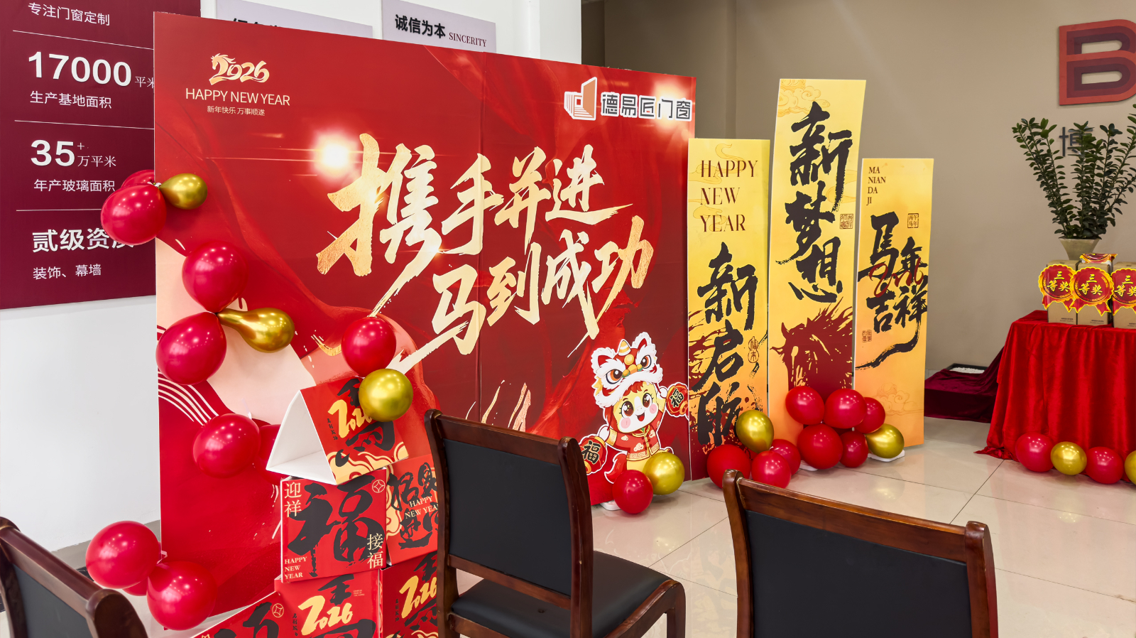 站在新年的起点,德易匠门窗全体员工将以更加饱满的热情与昂扬的斗志,携手并进,共同开启2026年的崭新篇章!